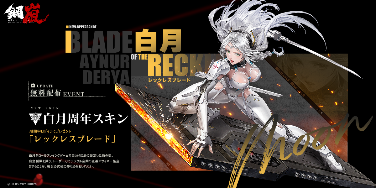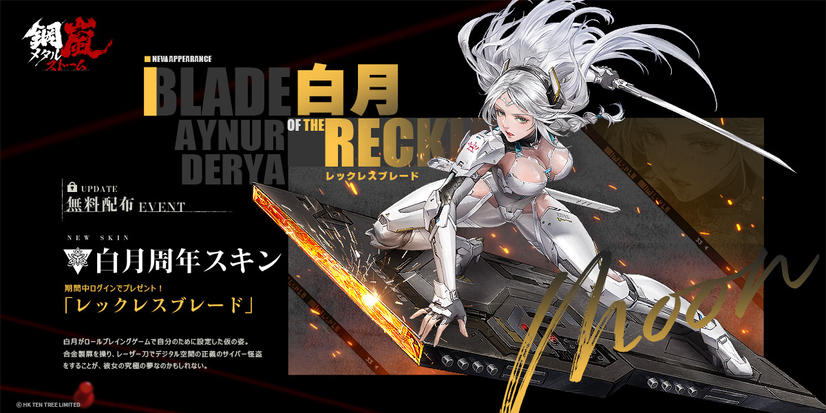 イベント期間中、ログインするだけで白月スキン「レックレスブレード」が手に入ります。